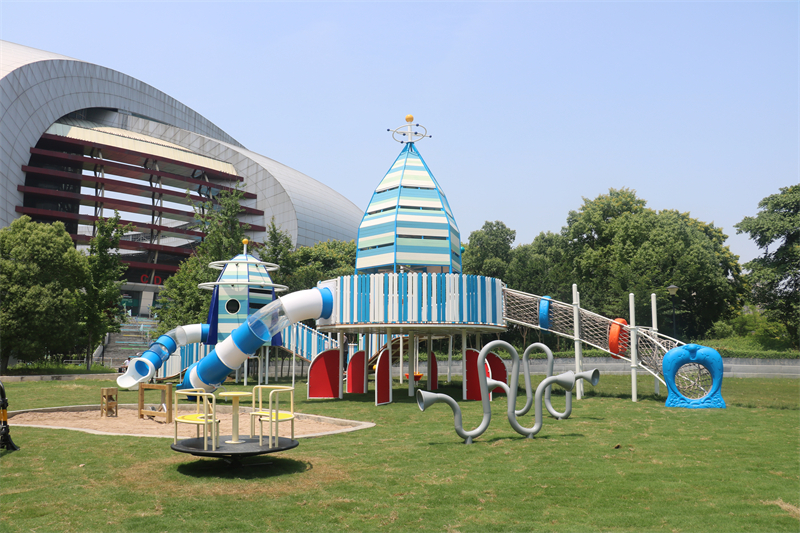 部分案例將傳統文化或科普知識融入設計。如深圳蓮花街道的滑梯項目中,客家圍屋的方格肌理被轉化為攀爬結構,并設置法治文化墻,讓孩子在游戲中潛移默化學習知識。