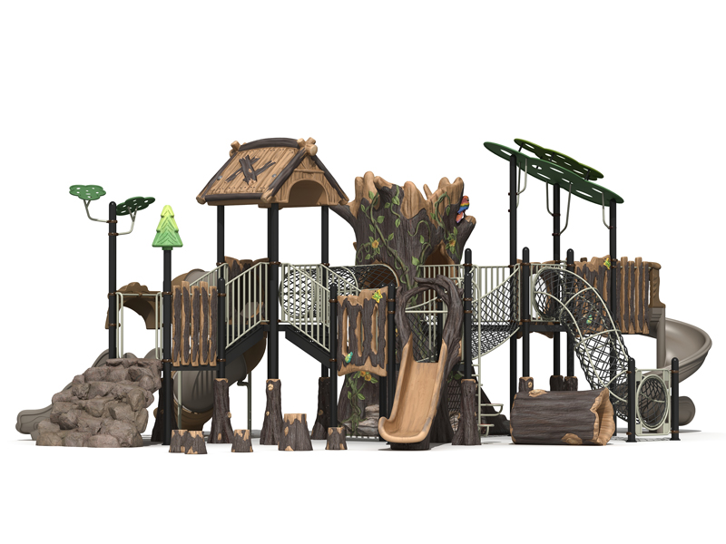 關鍵點6:適配場地大小與地形特點 選購前需精準測量場地尺寸,預留至少1.5米的安全緩沖距離。若場地狹窄,可選擇“垂直疊加”的組合式設計,利用縱向空間節省占地;若場地有坡度,可結合地形設計錯落式滑梯,既能適配場地,又能增加游戲趣味性。